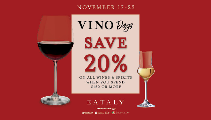 Vino Days is here and there has never been a better time to stock up and save! Save 20% off any spend of $150 or greater, valid on any wine available in the entire store!* Shop our full selection of wine at 20% off when you spend $150 or more bottles. Shop online or in-store from our online only pre-sale November 16th and in-store or online Monday November 17th through Sunday, November 23rd. No code is necessary, just put $150 worth of items into your cart and see the savings at checkout. Offer available for shipping, local delivery, or pick-up in-store. Choose your store at the link.